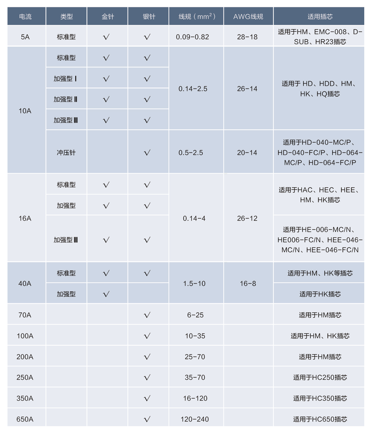 2. 根據(jù)接線截面積 3. 根據(jù)鍍層:鍍銀、鍍金 PS: 用于信號傳輸時,鍍金能更好防止信號的衰退;抗氧化性更強。