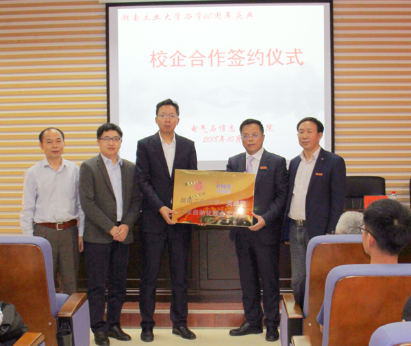 2018年10月28日湖南工業(yè)大學(xué)辦學(xué)60周年慶典之際,英威騰電氣與湖南工業(yè)大學(xué)在電氣與信息工程學(xué)院共建“湖南工業(yè)大學(xué)-英威騰工業(yè)自動(dòng)化聯(lián)合實(shí)驗(yàn)室”,校長(zhǎng)譚益民、電氣與信息工程學(xué)院院長(zhǎng)李圣清、書(shū)記傅麗華,英威騰傳動(dòng)市場(chǎng)總監(jiān)劉長(zhǎng)志、人力資源開(kāi)發(fā)部總監(jiān)朱漢行等領(lǐng)導(dǎo)和嘉賓出席聯(lián)合實(shí)驗(yàn)室成立簽約典禮。