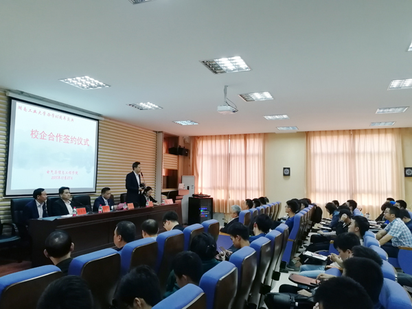 在典禮上,湖南工業(yè)大學(xué)校長(zhǎng)譚益民做了重要講話(huà),表示在60周年慶典日參加電氣學(xué)院的校企合作簽約儀式很有意義,指出校企共建聯(lián)合實(shí)驗(yàn)室的合作模式是能切實(shí)能幫助學(xué)生成才培養(yǎng)方式,能很好的將理論和應(yīng)用研究結(jié)合起來(lái),是一件“接地氣”的事情。譚校長(zhǎng)在講話(huà)中表示,是共同的人才培養(yǎng)理念和學(xué)校對(duì)接服務(wù)企業(yè)和市場(chǎng)需求的迫切需求,讓我們達(dá)成了本次合作。相信這是良好的開(kāi)端,在簽約企業(yè)的示范引領(lǐng)下,一定會(huì)有越來(lái)越多的優(yōu)秀企業(yè)會(huì)加入到校企合作中,與湖南工業(yè)大學(xué)實(shí)現(xiàn)合作共贏。