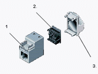 1. RJ45模塊,8個IDC觸針和接地觸點 2. 壓線模塊3. 屏蔽的后蓋7751S(可選)