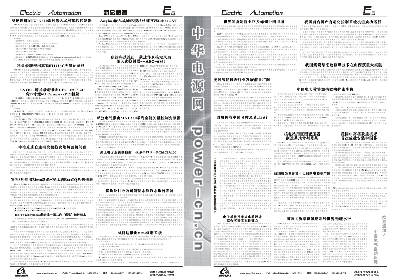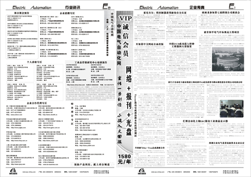 中國電氣自動化網(wǎng)已發(fā)展成為框架完善、信息豐富、功能強大的電氣自動化行業(yè)中專業(yè)、權(quán)威的電子商務(wù)、資訊服務(wù)平臺。中國電氣自動化網(wǎng)把貿(mào)易與資訊有機結(jié)合一起,整合所有相關(guān)行業(yè)資源。