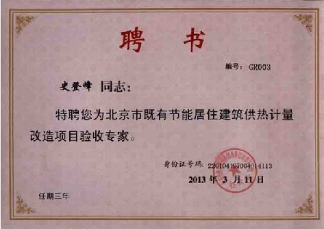 為此,北京城建科技促進(jìn)會通過公開征集和審核的方式確定選定“北京既有節(jié)能居住建筑供熱計量改造項目驗收專家”。非常榮幸,碩人時代戴總、史總和鄧總(排名不分先后)獲此殊榮,這將促使公司對供熱計量工作做出更大的貢獻(xiàn)。