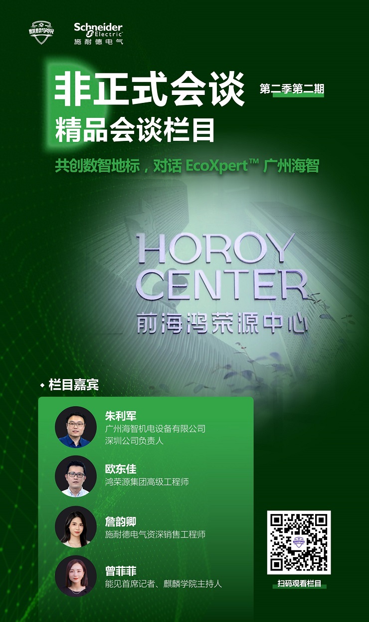 由全球能源管理與自動化領域的數(shù)字化轉型專家施耐德電氣打造的全新一季精品會談欄目“非正式會談”第二季正火熱播出,并于近日正式上線了第二期節(jié)目。在本期會談中,廣州海智機電設備有限公司(以下簡稱廣州海智)深圳公司負責人朱利軍及鴻榮源集團高級工程師歐東佳作為特邀嘉賓,與施耐德電氣資深銷售工程師詹韻卿一起,就EcoXpert™合作伙伴計劃的數(shù)字化賦能和深圳前海鴻榮源中心項目的建設展開深度討論,為觀眾帶來智能樓宇領域的前沿實踐經驗分享。