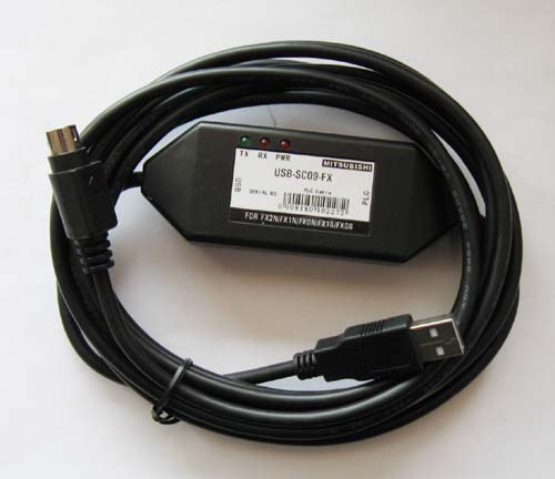 USB-SC09-FX USB接口的三菱 PLC 編程電纜,USB/RS422 接口,僅用于三菱 FX系列,菱形適配器,三燈指示, 長度3米.