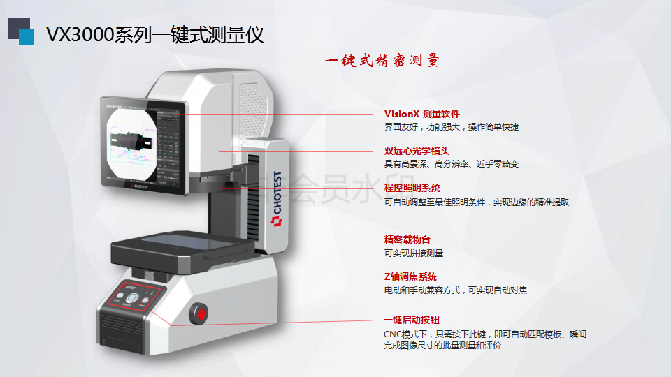 隨著科學(xué)技術(shù)的不斷進步,工業(yè)現(xiàn)代化不斷朝著自動化、智能化、數(shù)字化方向發(fā)展,傳統(tǒng)測量儀器如投影儀、影像測量儀、工具顯微鏡、輪廓儀、游標卡尺、千分尺等,在尺寸輪廓測量時面臨著諸多如“測量對象需要定位或原點定位費時、批量測量操作時間長、不同測量人員導(dǎo)致測量結(jié)果不同、數(shù)據(jù)統(tǒng)計管理繁雜等”一系列的弊端,已經(jīng)難以滿足現(xiàn)代工業(yè)生產(chǎn)過程中有關(guān)高精度、高效率、高可靠性的測量需求。為滿足現(xiàn)代化工業(yè)測量需求,中圖儀器VX3000系列一鍵式測量儀順勢而生!