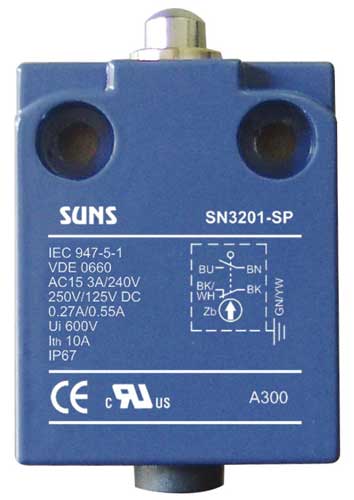 SN3201安全防水限位開關(guān) 通過UL CCC CE CSA認(rèn)證 SUNS美國三實 上海三實電器有限公司