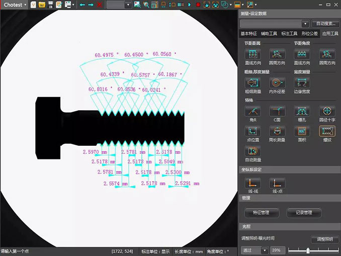 4. 功能豐富,自動報表 √ 軟件分為測量設(shè)定、單件測量、CNC測量、自動測量、統(tǒng)計分析五大功能模塊; √ 提供多達(dá)80種提取分析工具,包括【特征提取】工具(如最值點、中心線、圓弧、峰值圓等),【輔助工具】(如任意點線圓、擬合直線、擬合圓、切線、內(nèi)切圓等),【智能標(biāo)注】工具,【形位公差】工具,特殊【應(yīng)用工具】(如節(jié)距距離、節(jié)距角度、槽孔、螺紋、圓徑十字、倒角、圓角等); √ 自動輸出SPC分析報告,可輸出統(tǒng)計值(如CA、PPK、CPK、PP等)及控制圖(如均值與極差圖、均值與標(biāo)準(zhǔn)差圖、中位數(shù)與極差圖、單值與移動極差圖)。