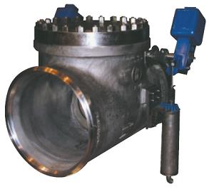 在火力發(fā)電廠,汽輪發(fā)電機是電廠的心臟。抽氣止回閥是汽輪發(fā)電機組的配套產(chǎn)品。是保護汽輪發(fā)電機組的專用快關(guān)閥門,其作用是防止汽輪機組在突然甩負荷時汽輪機內(nèi)壓突然降低,抽汽管和各種熱器內(nèi)蒸汽倒流入汽輪機內(nèi)造成在每分鐘3000多轉(zhuǎn)高速旋轉(zhuǎn)的汽輪機葉片突然打反車運轉(zhuǎn),而造成將汽輪機葉片打碎,毀壞汽輪發(fā)電機的惡性事故,并防止加熱器系統(tǒng)管道泄露使水從抽汽管路進入汽輪機內(nèi)而發(fā)生水擊事故。