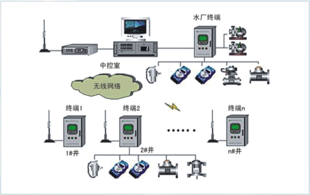 應用環(huán)境:深井泵集中監(jiān)控系統(tǒng)。