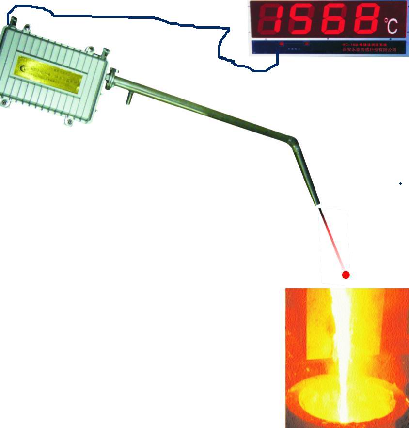 鑄造熔煉連續(xù)式測溫儀 HC-(R)16TZ系列非接觸式冶煉、鑄造測溫系統(tǒng),鑄造熔煉連續(xù)測溫儀 鑄造行業(yè)鐵水與鋼水溫度的測量,常用的方法是目測和快速熱電偶插入法兩種。快速熱電偶插入法中,盡管其溫度值可由記錄儀記錄,但由于快速熱電偶只能在插入瞬間測量溫度,而不能長時間連續(xù)測溫,故只能在熔煉過程中抽測幾點,無法掌握整個過程的溫度變化情況,而且每次測溫人工插入操作,一支電偶只能使用1-2次,電偶消耗較大,成本高并且使用較麻煩。 應用HC-(R)16TZ后,只要在距熔爐口3-10m以內(nèi)的適當位置固定安裝,就可自動地連續(xù)測量熔爐內(nèi)的溫度。不同的用戶可選接記錄儀,打印機和大屏幕顯示儀等外部設備,可以自動記錄打印出爐內(nèi)溫度變化曲線和測溫時間,為生產(chǎn)管理和工藝改進提供可靠依據(jù)。 ● 系統(tǒng)性能參數(shù) 溫度范圍: 600-1800℃ 傳感器: 光電多波長探ce器 波長范圍: 0.85-1.1m/0.95m 精度: 0.5%或±2℃ 瞬間視場: 2.5x25毫弧度 重復性: 在25℃時為滿量程的0.1%+1位數(shù)字 輸出: 4-20mA/RS485(可選)  環(huán)境溫度: 0~50℃(風冷0-100℃)  溫度/防護: 10~90%無結(jié)露/IP65 測溫傳感器 安裝距離: 2-10m(可選)