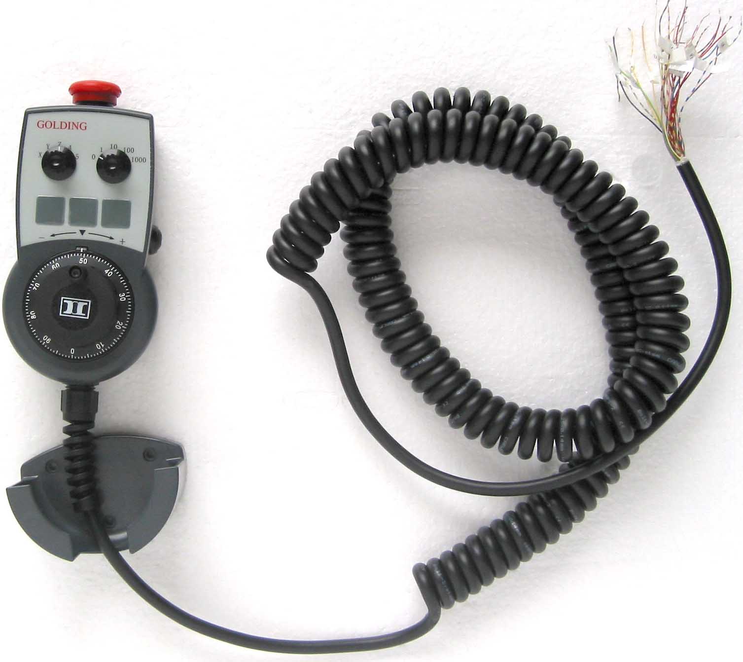 手輪用于觸發(fā)所選擇軸的移動運行。手輪可按NC系統(tǒng)軸控制單元的要求選擇單端手輪或差分手輪,移動的脈沖當(dāng)量由系統(tǒng)定義。