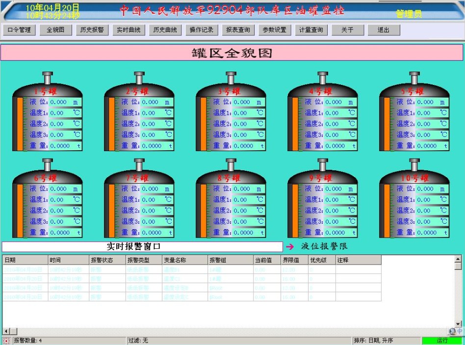 罐體監(jiān)控計(jì)量系統(tǒng)主要有監(jiān)控機(jī)柜、現(xiàn)場(chǎng)傳感器、數(shù)據(jù)采集模塊通過(guò)RS485或RS232通訊方式采用通訊電纜或光纖傳輸?shù)诫娔X實(shí)現(xiàn)對(duì)罐內(nèi)的液位測(cè)量、溫度、重量、壓力等參數(shù)的自動(dòng)化監(jiān)控和報(bào)警,生成數(shù)據(jù)并保存至少要1年以上,具備數(shù)據(jù)報(bào)表打印功能,也可以通過(guò)網(wǎng)絡(luò)上傳給部門(mén)領(lǐng)導(dǎo),便于管理。