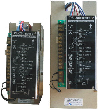 PA200x 系列單相晶閘管調整器 簡介: PA200x 單相晶閘管調整器以最新的控制技術為基礎,追求可靠性,可控性。觸發(fā)單元與晶閘管一體化,小形輕量適用于高密度盤裝的晶閘管調整器。它的控制有相位控制方式和過零分頻控制方式 2 種。在位相控制方式上有電壓反饋形,電流反饋形,功率反饋形及無反饋形,根據(jù)發(fā)熱體特性能選擇最佳控制方式。另外,可根據(jù)所連接的各種設定可進行輸出的斜率設定,或確保最小輸出電壓的截距設定。可實現(xiàn)手動控制,自動控制和手自動轉換控制。可控制電阻負載,碳棒負載,鉬棒負載,變壓器負載和一些變阻性負載或交流變直流負載。