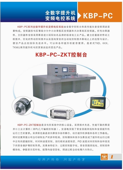 KBP-PC-ZKT控制臺(tái)是KBP-PC電控系統(tǒng)中的核心設(shè)備,采用技術(shù)先進(jìn)。性能可靠的原裝井口工業(yè)計(jì)算機(jī)(即PLC,可編程控制器),完善地實(shí)現(xiàn)了安全回路雙線(xiàn)制和全部提升機(jī)運(yùn)行工藝的要求。采用彩色液晶顯示屏顯示各種靜態(tài)、動(dòng)態(tài)提升機(jī)參數(shù)和各種工作曲線(xiàn)。同時(shí)還使用我公司自行研制生產(chǎn)的多種檢測(cè)、控制模塊和顯示儀表完成了提升機(jī)運(yùn)行過(guò)程中應(yīng)有的邏輯控制、時(shí)間和速度控制、按行程的速度給定、PID速度閉環(huán)控制和各種情況下的安全保護(hù)等控制作用。其基本特征為:過(guò)程控制數(shù)字化、安全回路雙線(xiàn)化、控制組件模塊化、參數(shù)顯示實(shí)時(shí)化、報(bào)警內(nèi)容語(yǔ)言化、調(diào)速過(guò)程自動(dòng)化等六大特點(diǎn)。