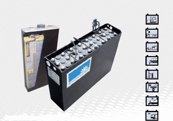 Sonnenschein EpzV BS系列可運(yùn)用于倉(cāng)儲(chǔ)系統(tǒng),適合叉式升降裝卸車(chē),清潔車(chē),電瓶車(chē),由于該電池免維護(hù),無(wú)污染,零排放等特點(diǎn),還特別適合運(yùn)用于食品糧食行業(yè),制藥業(yè),化學(xué)工業(yè)。德國(guó)陽(yáng)光叉車(chē)電池可為各知名品牌叉車(chē)配套,如林德叉車(chē),力至優(yōu)叉車(chē),豐田叉車(chē),海斯特叉車(chē),永恒力叉車(chē),科朗叉車(chē),TCM叉車(chē).