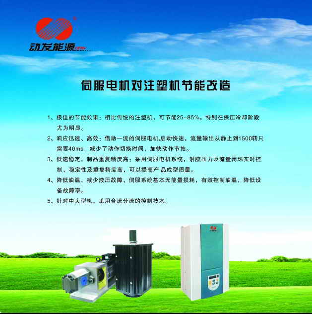 塑料制作行業(yè)中廣泛使用的注塑機,如果使用節(jié)能全數(shù)字式交流伺服電機節(jié)電器控制油泵,既可提高設備的可靠性和使用壽命,又可節(jié)省大量電耗,極大地提高了企業(yè)的經濟效益和市場競爭力。