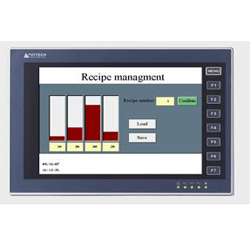 7.5寸數(shù)控裝置(PWS6800C-P,6800C-N,6700T-P,6700T-N) 64K 色 Color/TFT LCD 真彩顯示,7.5寸; 640x480像素(6700T-P為800x480像素); 可顯示 8x8 文字的數(shù)目是 80x60 CCFT背光燈壽命約 50,000 小時。支持U盤和CF卡進行歷史數(shù)據(jù)和配方、警報的保存以及進行備份,前面板為 IP65 等級,通過CE、RoHS等多項認證。