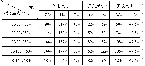 產(chǎn)品型號(hào): K-30*20 K-80*50 K-80*80 K-120*60 K-120*80 K-160*80
