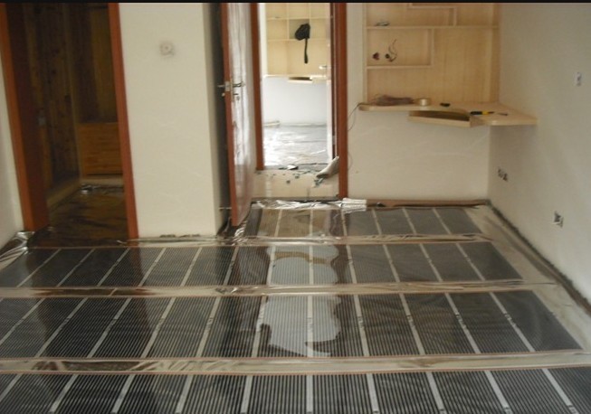 電熱膜表層材料為特制的聚酯薄膜,膜片中間的墨線是采用特制可導(dǎo)電油墨,是電熱膜核心部分,相當于很多并聯(lián)的電阻,通電后可發(fā)熱。電熱膜兩邊的銀色條是金屬載流條,是用來連接油墨(電阻),作用相當于導(dǎo)線。金屬載流條的主要材料為銅鍍錫和銀漿。電熱膜智能供暖系統(tǒng)采用先進的電腦數(shù)控技術(shù)制造,能精確控制膜片上固化油墨的厚度,保證膜面溫度均勻穩(wěn)定。 低溫輻射電熱膜是一種通電后能發(fā)熱的半透明聚酯薄膜,由可導(dǎo)電的特制油墨、金屬載流條經(jīng)加工、熱壓在絕緣聚酯薄膜間制成。工作時以電熱膜為發(fā)熱體,將熱量以輻射的形式送入空間,使人體和物體首先得到溫暖,其綜合效果優(yōu)于傳統(tǒng)的對流供暖方式。低溫輻射電熱膜系統(tǒng)由電源、溫控器、連接件、絕緣層、電熱膜及飾面層構(gòu)成。電源經(jīng)導(dǎo)線連通電熱膜,將電能轉(zhuǎn)化為熱能。由于電熱膜為純電阻電路,故其轉(zhuǎn)換效率高,除一小部分損失(2%),絕大部分(98%)被轉(zhuǎn)化成熱能. 電熱膜系統(tǒng)組成及功能: (1)電熱膜系統(tǒng)包括以下幾個部分: 1、保溫層 2、反射膜 3、電熱膜;4、連接導(dǎo)線、連接卡、絕緣罩 5、溫控器。 (2)電熱膜片 電熱膜片是整個系統(tǒng)的核心元件,是此系統(tǒng)的發(fā)熱元件。它的基材為PET特制聚酯膜,發(fā)熱體為特制導(dǎo)電油墨、附以銀漿和導(dǎo)電的金屬匯流條為導(dǎo)電引線,最后經(jīng)熱壓下復(fù)合而成。電熱膜的發(fā)熱主要以輻射的方式散發(fā)熱量,屬低溫輻射,它具有透射性,以紅外線的形式向室內(nèi)散發(fā)傳遞熱能。 (3)連接導(dǎo)線、連接卡、絕緣罩 連接導(dǎo)線是對電熱膜提供電源,對整個電路構(gòu)成回路,連接卡、絕緣罩是為了跟電熱膜的組成部分 ,保證運行安全。 (4)溫控器 對整個電熱膜系統(tǒng)進行控制,保證室內(nèi)溫度的穩(wěn)定性。 電熱膜連接方法: 電熱膜通過連接卡與溫控器連接,每組膜以并聯(lián)方式連接,最后統(tǒng)一由一組線路串聯(lián)到溫控器,所有接頭均密封于連接卡中,導(dǎo)線部分不能出現(xiàn)接頭點. 附,連接卡安裝方法: ▼連接卡安裝在電熱膜組的一個末端(另一末端用特制絕緣膠帶作絕緣處理)。 ▼將連接卡的中心對準并蓋住載流條的一端。用專用工具的壓力將其壓緊在適當?shù)奈恢谩? ▼用專用壓接鉗將連接卡壓緊、壓平到電熱膜上,并用M3膠作防水絕緣處理。
