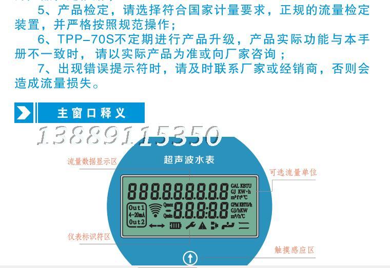 解釋:超聲波水表,DN100口徑,四通道,1.6MPa,球墨鑄鐵,溫度等級(jí)T50,一體式,電源供電,RS485輸出。