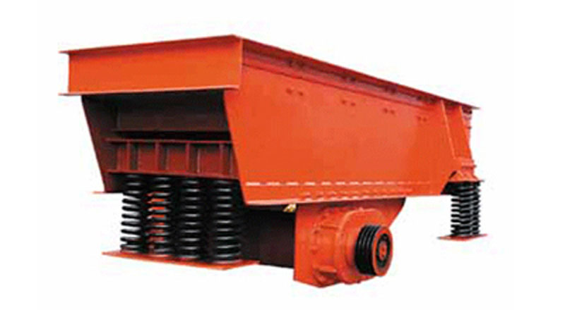 主要由振動機(jī)架、振動電動機(jī)、彈簧、支承座及耐磨襯板等組成。由于振動電動機(jī)的啟動,使機(jī)架在支承彈簧上作強(qiáng)制振動,物料則以此振動為動力,在料槽上作滑動及拋擲運(yùn)動,從而使物料前移而達(dá)到給料目的。