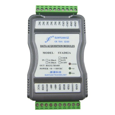 選型舉例3: 型號:SY AD08 U1;表示八路0-5V信號輸入,RS232/RS485輸出。