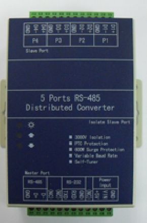 本產(chǎn)品是一款可通過一路RS-485或RS232主口擴(kuò)展出4路RS-485從口的工業(yè)級光電隔離型RS-485分配器。可以有效的實現(xiàn)RS-485網(wǎng)絡(luò)的中繼、擴(kuò)展與隔離。分配器的主口端同時提供RS-485和RS-232(三線)兩種接口,從口端擴(kuò)展出4路RS-485接口。有源光電隔離型RS-485分配器產(chǎn)品是專門針對工業(yè)現(xiàn)場劣環(huán)境而設(shè)計的,對于那些要求高可靠性和安全性的場合尤其適合。光電隔離功能可以有效的使RS-485主從設(shè)備之間彼此隔離開來,避免因主從設(shè)備間的地電位差、以及靜電、雷擊和浪涌給RS-485主從備造成的損害,同時也有效的避免了主從設(shè)備端的地電位差而在設(shè)備間產(chǎn)生的地環(huán)流對RS-485設(shè)備造成的損害。