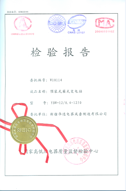 5.代理(沈陽(yáng))高壓電器、高壓開(kāi)關(guān)柜型式試驗(yàn)檢測(cè)實(shí)驗(yàn)報(bào)告:KYN28A-12/1250-31、5 燃弧試驗(yàn)報(bào)告、內(nèi)部故障(東北電科院電力產(chǎn)品檢測(cè)站 6.代理(山東)高壓電器、高壓開(kāi)關(guān)柜型式試驗(yàn)檢測(cè)實(shí)驗(yàn)報(bào)告:YBW-12/0.4kV-1250 箱式變電站型式試驗(yàn)報(bào)告證書(shū) 國(guó)家元件和成套設(shè)備檢測(cè)中心(山東)
