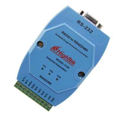HighTek HK-5108工業(yè)級(jí)光電隔離/防雷型接口轉(zhuǎn)換器、兼容RS-232C、RS-422、RS-485標(biāo)準(zhǔn),能夠?qū)味说腞S-232信號(hào)轉(zhuǎn)換為平衡差分的RS-422或RS-485信號(hào),內(nèi)置的光電隔離器,能夠提供高達(dá)2500Vrms的隔離電壓,帶有快速的瞬態(tài)電壓抑制保護(hù)器,此保護(hù)器被設(shè)計(jì)用來保護(hù)RS-422/RS-485接口,采用當(dāng)今先進(jìn)的TVS(TRANSIENT VOLTAGE SUPPERSSOR)瞬態(tài)電壓抑制器, 正常情況下TVS管呈高阻狀態(tài),當(dāng)TVS管兩端經(jīng)受瞬間的高能量沖擊時(shí), 它能以極高的速度將其兩端的阻抗降低,吸收一個(gè)大電流,從而把其兩端的電壓鉗制在一個(gè)預(yù)定的數(shù)值上,保護(hù)后面的電路元件不因瞬態(tài)高壓沖擊而損壞。此保護(hù)器可以有效地抑制閃電(LIGHTNING)和ESD,提供每線600W的雷擊浪涌保護(hù)功率, 以及各種原因在線路上產(chǎn)生的浪涌電壓和瞬態(tài)過壓,并且極小的極間電容保證了RS-422/RS-485接口的高速傳輸。