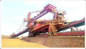 第1章 系統(tǒng)簡介 1.1 現場概述 斗輪堆取料機又稱懸臂式堆取料機,是散貨料場專用堆取設備。它是堆取料合一的機械,即是一種挖取和堆存煤炭、礦石、砂石等松散物料的高效率機械。它不僅適用于電廠,而且在碼頭、港口也很適用,大多數的轉運煤及松散物料的碼頭、港口都采用斗輪堆取料機。斗輪堆取料機的采用,大大縮短了堆取時間,提高了工作效率,減輕了工人勞動強度。國內最早設計制造的企業(yè)有:大連重工(原大連工礦車輛廠)、哈爾濱重型機器廠、北京起重運輸機械研究所等單位。 斗輪堆取料機類設備包括堆取料機,取料機,堆料機,混勻取料機,混勻堆料機,門式堆取料機等。使用最多的是堆取料機,其原因是此類設備功能較齊全,可滿足大多數條件下的需要。上述各種設備的基本功能是向料場堆料,或從料場取料。其中堆取料機具有堆取功能,取料機、堆料機只有取料或堆料功能,混勻取料機與混勻堆料機除具有取料與堆料功能外還具有均化功能,以滿足用戶對物料均化的要求。 混勻取料機與混勻堆料機顧名思義,既有正常的堆料與取料功能,也有均化功能,主要用于鋼鐵企業(yè),水泥行業(yè),電廠的原料進行均化處理。如燒結廠鐵礦石原料的均化,水泥廠的石灰石均化,發(fā)電廠的煤炭均化等。其重要意義在于經過均化后的原料的化學成份相對穩(wěn)定,煤炭灰份與燃燒值也相對穩(wěn)定,可使這些行業(yè)在產品質量控制方面與產品質量方面有較大提高,同時提高了經濟效益。并降低了能源消耗。混勻取料機通常為橋式或門式結構。混勻堆料機通常是搖臂式結構。在具體工作時與普通堆取料機的區(qū)別在于混勻堆料機是連續(xù)走行堆料,堆料方式又可分為人字形布料與菱形布料。當堆料作業(yè)結束后再進行混勻取料。混勻取料機取料時為全斷面取料,既同時取到整個斷面的物料。物料是由料耙耙下來,再由斗輪取到機上皮帶機,由機上皮帶機送到地面皮帶機。在實際取料過程中大車步進運行一個單程,然后堆取料機運行一個單程。如此反復運行取料。 為提高均化作業(yè)的效率,設備應具備尋堆認址、定位, 自動確定各層料堆起點、終點及位置跟蹤、終點記憶、料流對中心、電纜保護、整機自動堆取料,從而實現流暢和高效的堆取料自動作業(yè)。同時中控室能夠對作業(yè)過程進行監(jiān)視。所以有必要對堆取料機位置進行連續(xù)跟蹤。