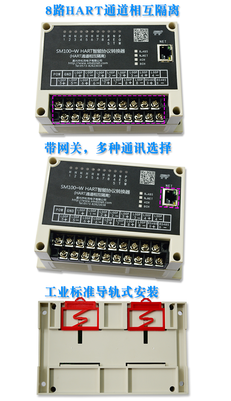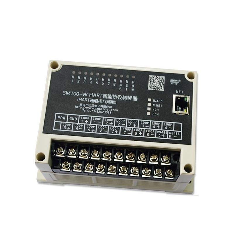 SM100-W系列HART智能轉(zhuǎn)換器是采用ARM微處理器、HART協(xié)議調(diào)制解調(diào)專用芯片并結(jié)合大量的實踐經(jīng)驗所研發(fā)的產(chǎn)品。其按照工業(yè)產(chǎn)品要求進(jìn)行設(shè)計,具有很高的可靠性及穩(wěn)定性。智能轉(zhuǎn)換器配有標(biāo)準(zhǔn)的RS485接口及以太網(wǎng)接口,能與有HART協(xié)議的智能儀表進(jìn)行數(shù)據(jù)透明傳輸或者轉(zhuǎn)換為MODBUS_RTU或MODBU_協(xié)議讀取數(shù)據(jù),保證數(shù)據(jù)進(jìn)行實時傳輸。 HART協(xié)議使用Bell202頻移鍵控(FSK)標(biāo)準(zhǔn),在4~20mA基礎(chǔ)上疊加調(diào)制數(shù)字信號,使得HART協(xié)議儀表在不干擾4~20mA模擬量信號的同時允許雙向數(shù)據(jù)通訊。SM100-W系列智能轉(zhuǎn)換器就是數(shù)字信號與模擬信號進(jìn)行雙向調(diào)制解調(diào)的智能轉(zhuǎn)換器。