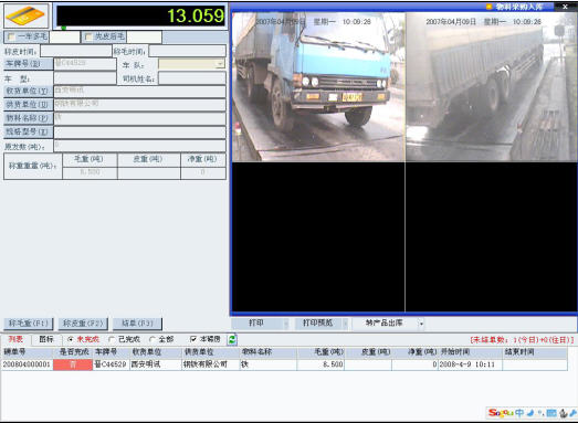 完成入庫過磅、出庫過磅、內(nèi)部調(diào)撥過磅、借磅稱重業(yè)務(wù)管理,記錄過磅稱重的車輛信息、毛重、皮重、凈重數(shù)據(jù)和視頻抓拍圖像。