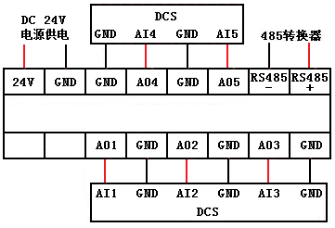 二、產(chǎn)品特性 1.產(chǎn)品性能: ● 配有RS485通訊接口,可以進(jìn)行參數(shù)配置。 ● 采用工業(yè)通用外殼,直接安裝在儀表上。 ● 采用專用配置軟件,可以與RS485智能儀表進(jìn)行數(shù)據(jù)通訊。 ● 對RS485儀表變量進(jìn)行電流變送輸出。 ● 支持標(biāo)準(zhǔn)的MODBUS 協(xié)議。 ● 支持單臺(tái)RS485儀表。 ● 支持多種特殊RS485智能儀表。 2.主要參數(shù): ● 外殼尺寸:長82 mm × 寬69 mm × 高113 mm。 ● 工作環(huán)境溫度:-20℃~+80℃。 ● 儲(chǔ)存溫度:-25℃~+80℃。 ● 電源輸入電壓:DC 12~24V。 3.接線圖: