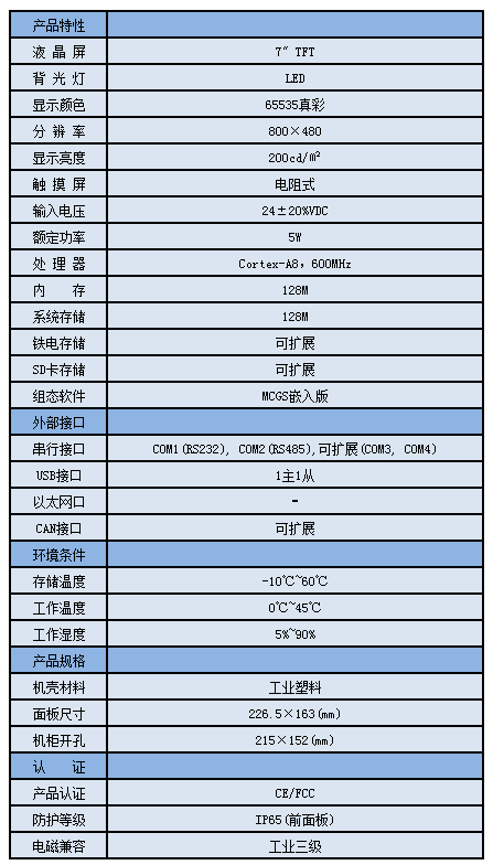 TPC7062TX,是一套以先進的Cortex-A8 CPU為核心(主頻600MHz)的高性能嵌入式一體化觸摸屏。該產(chǎn)品設計采用了7英寸高亮度TFT液晶顯示屏(分辨率800×480),四線電阻式觸摸屏(分辨率4096×4096)。同時還預裝了MCGS嵌入式組態(tài)軟件(運行版),具備強大的圖像顯示和數(shù)據(jù)處理功能。