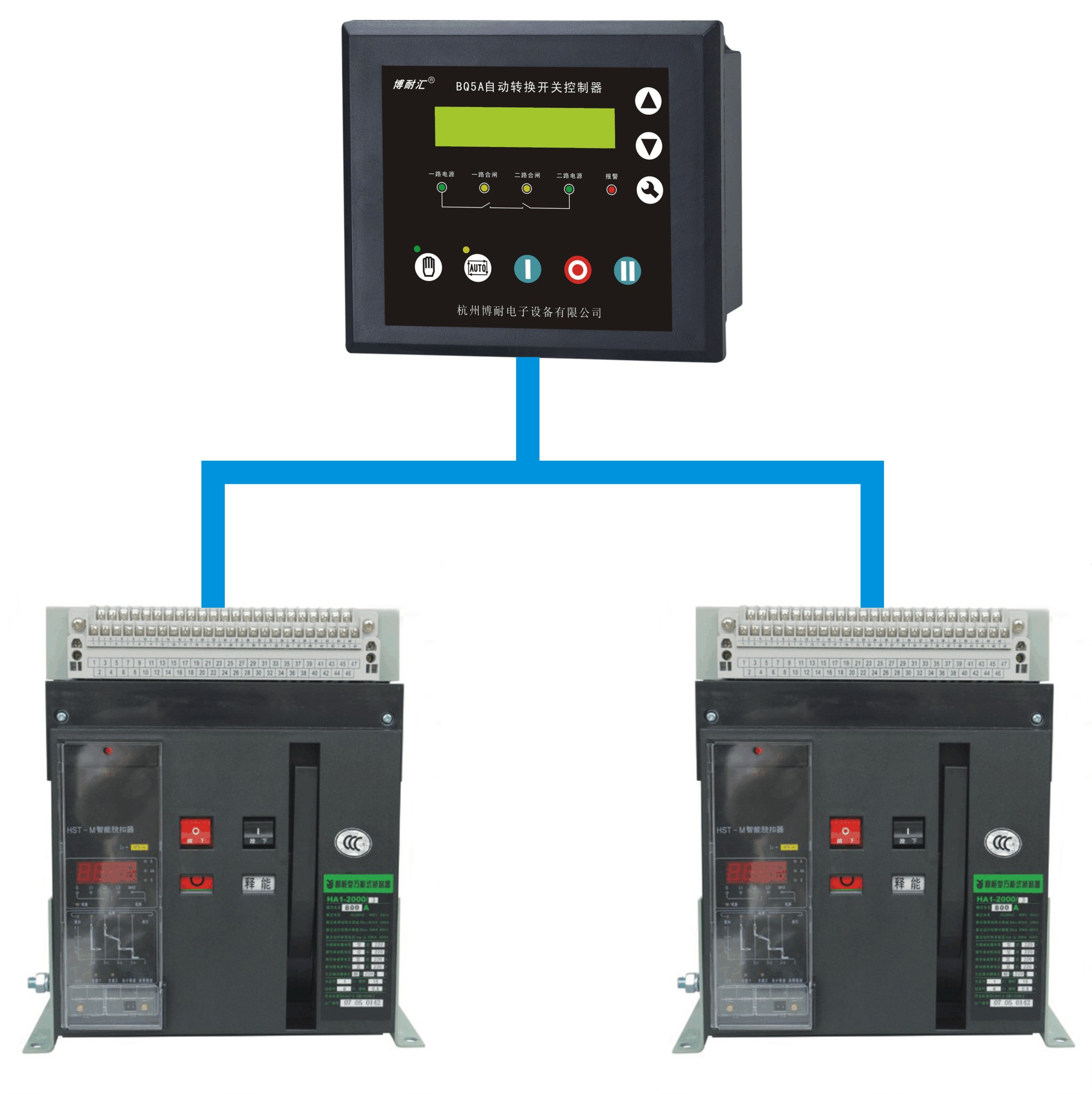 BQ5A自動(dòng)轉(zhuǎn)換開(kāi)關(guān)控制器是一種自動(dòng)化測(cè)量、LCD顯示為一體的智能雙電源切換系統(tǒng)。是雙電源切換的理想產(chǎn)品,在與低壓空氣斷路器配套使用后,特別適合于兩路低壓進(jìn)線側(cè)的自動(dòng)轉(zhuǎn)換和保護(hù)。 BQ5A自動(dòng)轉(zhuǎn)換開(kāi)關(guān)控制器的執(zhí)行部件是框架式空氣斷路器,兩臺(tái)斷路器不用加裝適配器,也可以不需要欠壓脫扣器,控制器不需要外接直流電源,直接對(duì)兩路供電狀態(tài)進(jìn)行檢測(cè),自動(dòng)控制完成常用電源與備用電源的轉(zhuǎn)換。 產(chǎn)品具有結(jié)構(gòu)緊湊、電路先進(jìn)、接線簡(jiǎn)單,可靠性高,可廣泛應(yīng)用于電力、石油、化工、煤炭、冶金、鐵道、市政、智能大廈等行業(yè)、部門(mén)的電氣裝置、自動(dòng)控制以及調(diào)試系統(tǒng)。 產(chǎn)品特點(diǎn) 1.用于兩路市電、或一路市電一路發(fā)電自動(dòng)切換,尤其適合兩路低壓空氣斷路器的切換; 2.時(shí)刻監(jiān)視兩路三相電壓,對(duì)出現(xiàn)的電壓異常(如失壓、過(guò)壓、 欠 壓、缺相)做出準(zhǔn)確的判斷并輸出控制開(kāi)關(guān)量; 3.設(shè)有自動(dòng)/手動(dòng)狀態(tài)切換功能,在手動(dòng)方式下,可按手動(dòng)鍵實(shí)現(xiàn)開(kāi)關(guān)分合閘;自動(dòng)狀態(tài)下,任一路出現(xiàn)電壓異常時(shí),開(kāi)關(guān)自動(dòng)切換到另一路; 4.運(yùn)行模式可設(shè)定為一路優(yōu)先、二路優(yōu)先或無(wú)優(yōu)先(互為備用); 5.?dāng)?shù)字顯示兩路相電壓及線電壓,LED顯示兩路合閘及工作狀態(tài); 6.可在控制器上更改各參數(shù),均采用數(shù)字化調(diào)整(連續(xù)可調(diào));同時(shí)記憶在內(nèi)部FLASH 存儲(chǔ)器內(nèi),在系統(tǒng)掉電時(shí)也不會(huì)丟失; 7.具有自動(dòng)啟動(dòng)油機(jī)功能;控制器不需要外接直流供電電源,簡(jiǎn)單方便; 8.具有極強(qiáng)的抗電磁干擾能力,適合在強(qiáng)電磁干擾的復(fù)雜環(huán)境中使用; 9.控制器可與任何低壓空氣斷路器配套,如DW45、DW17、DW15、ABB Emax、MT、3WL等。 10.模塊化結(jié)構(gòu)設(shè)計(jì),阻燃ABS塑料外殼,嵌入式安裝方式,插拔式接線端子,結(jié)構(gòu)緊湊,安裝維護(hù)十分方便。 使用方法