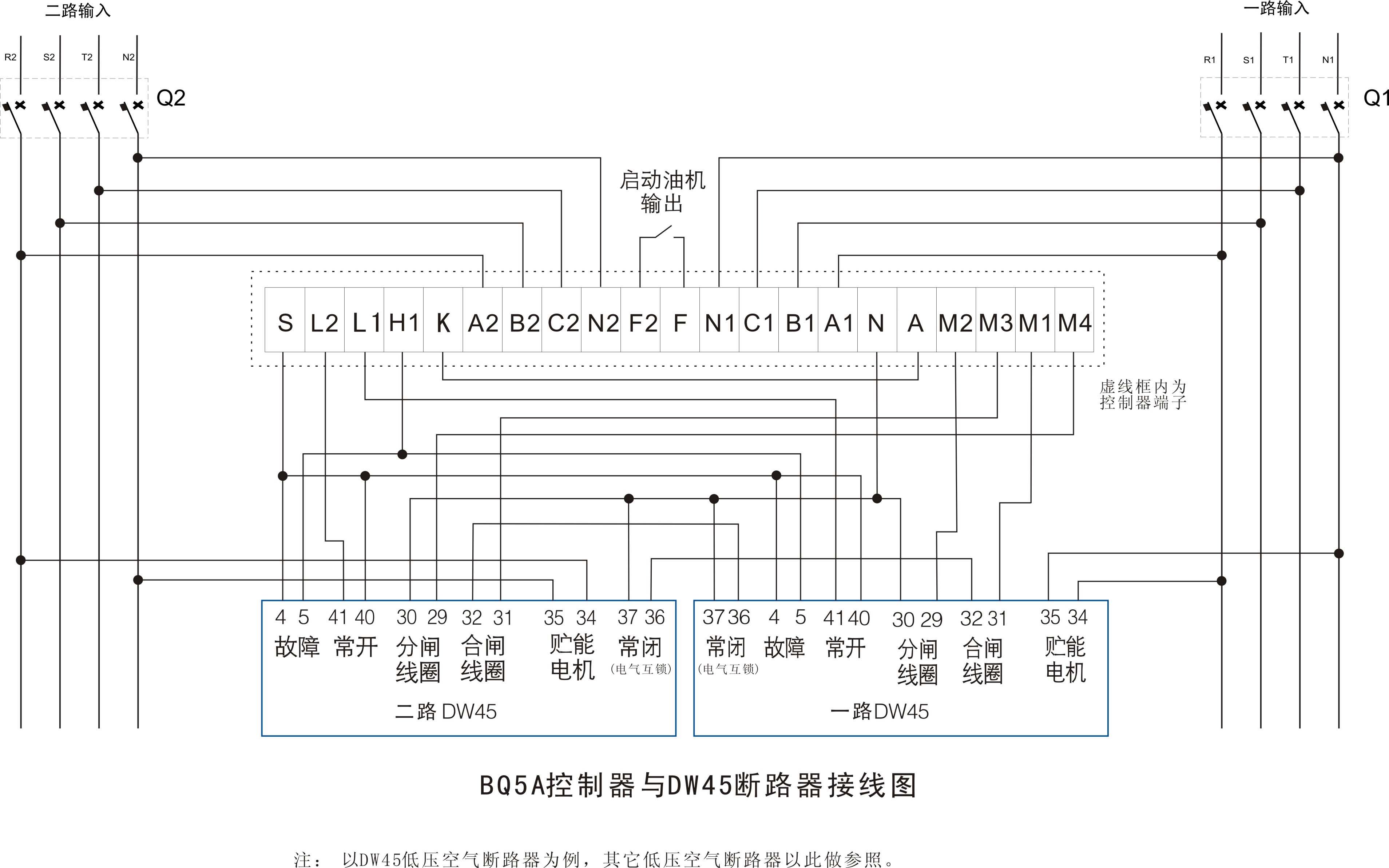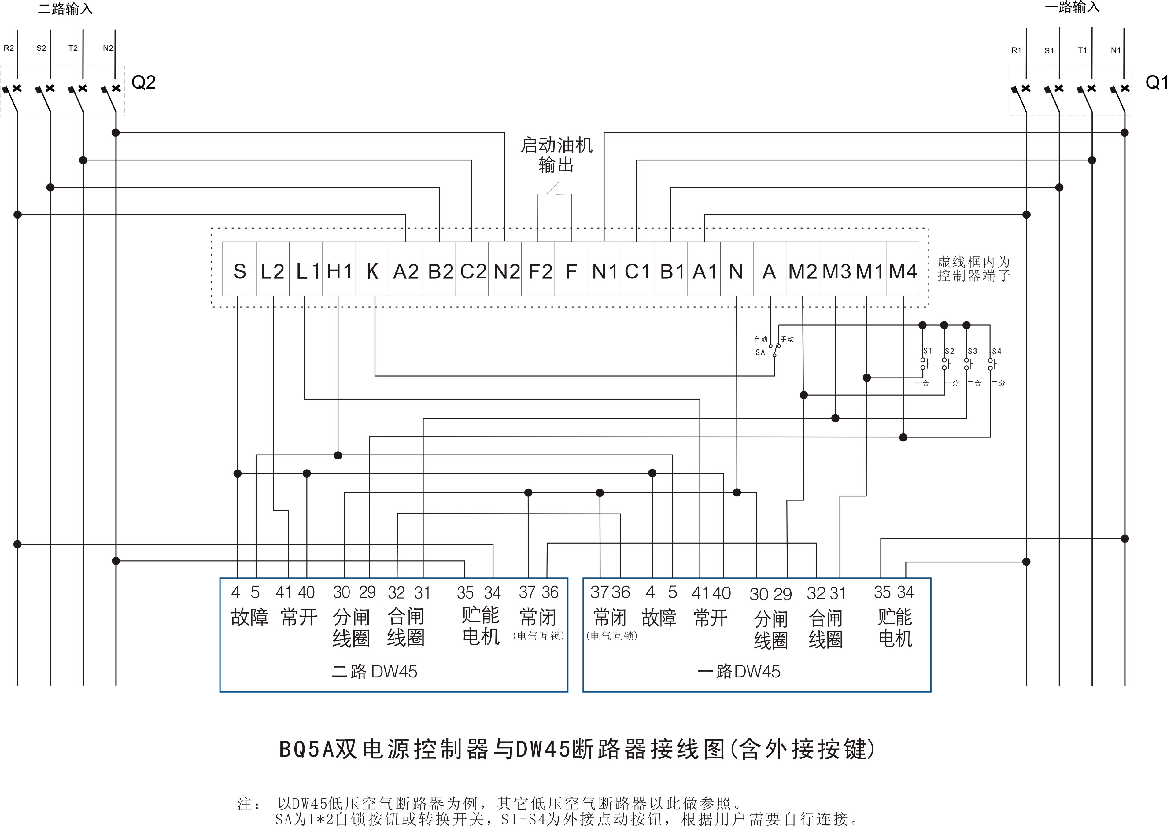 工作條件 1:由于各種低壓空氣式斷路器型號(hào)眾多,我們選取其中幾個(gè)有代表性的:國(guó)產(chǎn)DW45;ABB EMAX ;施耐德MT20;其它型號(hào)以此做參照。 2:為了雙電源的正常工作,低壓空氣式斷路器接入時(shí)必須安裝一些附件: 如合閘電磁鐵,分勵(lì)脫扣器。 3:雖然沒(méi)有機(jī)械聯(lián)鎖有電氣聯(lián)鎖也可工作,但是為了產(chǎn)品的安全可靠運(yùn)行,建議加裝機(jī)械聯(lián)鎖,使產(chǎn)品實(shí)現(xiàn)雙重保護(hù)尤為必要。 4:產(chǎn)品出廠前已經(jīng)過(guò)嚴(yán)格測(cè)試,錯(cuò)誤的接線及測(cè)試試驗(yàn)將會(huì)對(duì)控制器造成損壞。
