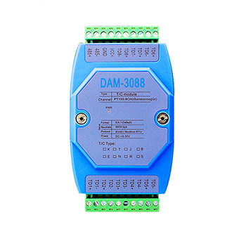 DAM-3088 簡介: DAM-3088模塊是全新一代基于嵌入式系統(tǒng)的熱電偶溫度采集模塊,采用標(biāo)準(zhǔn) DIN35 導(dǎo)軌安裝方式,現(xiàn)場安裝簡單,使用靈活;應(yīng)對各種現(xiàn)場應(yīng)用。模塊配置有 RS232 接口,方便與 PC 或 PLC 通信,模塊配置有 RS485 接口,可單獨(dú)與 PC 或 PLC 通信,也可以與多個(gè) 485 模塊組網(wǎng)使用。 參數(shù): 隔離耐壓:DC 2500V ESD 保護(hù):±15KV 供電范圍:DC +8~+36V 功耗:小于 1W 工作溫度:-40℃~+80℃ 工業(yè)級V0級防火塑料外殼保障產(chǎn)品應(yīng)用各類環(huán)境安全 安裝方式:標(biāo)準(zhǔn) DIN35 導(dǎo)軌安裝 溫度采集 輸入通道數(shù): 4\8 路 K 型熱電偶 輸入溫度范圍:-40℃~1370℃ 轉(zhuǎn)換速率:3 次/秒(單通道) 轉(zhuǎn)換分辨率:0. 1℃ 支持RS485,RS232可定制CAN 測量精度:±0.5℃(典型值) 輸入端過壓保護(hù),過流保護(hù),并有低通濾波 RS485 連接 DAM 系統(tǒng)模塊 RS485 接口為標(biāo)準(zhǔn) RS485 接口,采用差分信號邏輯,邏輯“1”以兩線間的電壓差為+(2~6)V 表示;邏輯“0”以兩線間的電壓差為-(2~6)V 表示。RS485 設(shè)備組網(wǎng)連接非常簡單,只需要將設(shè)備正端和負(fù)端并接入總線即可;當(dāng)其通信距離較長時(shí)應(yīng)該特別注意網(wǎng)絡(luò)拓?fù)洌琑S485 網(wǎng)絡(luò)拓?fù)湟话悴捎媒K端匹配的總線型結(jié)構(gòu),不支持環(huán)形或星形網(wǎng)絡(luò),從總線到每個(gè)節(jié)點(diǎn)的引出線長度應(yīng)盡量短,以便使引出線中的反射信號對總線信號的影響最低,更多詳細(xì)信息請參考相關(guān)資料。