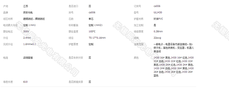 辰安PVC電子線UL1430一般電子、電器設(shè)備內(nèi)部連線 無錫辰安光電有限公司
