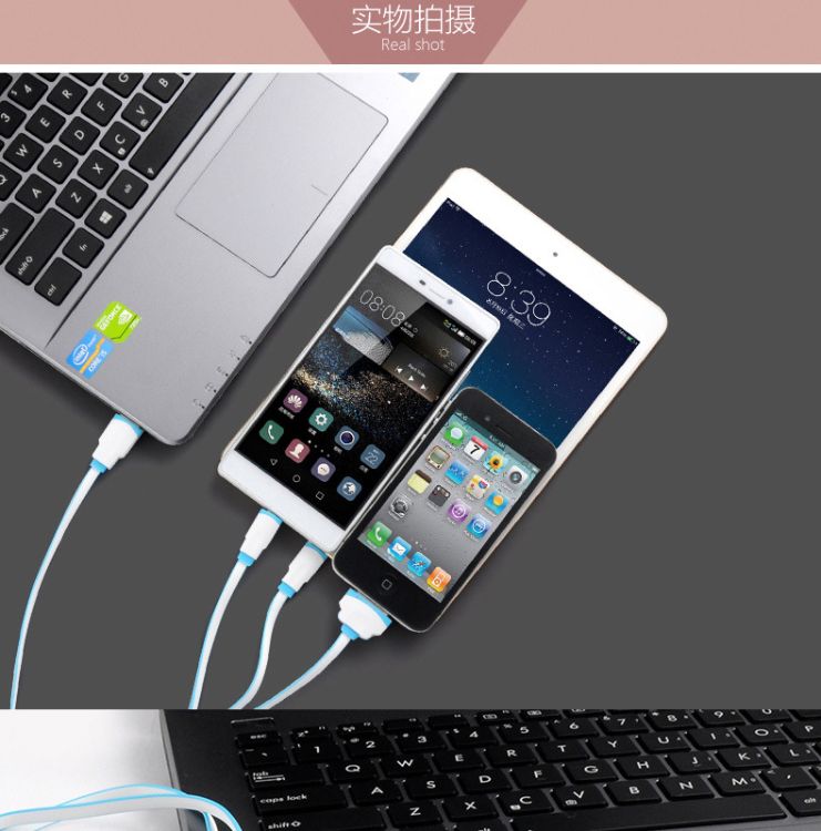 三合一數(shù)據(jù)線適用于安卓V8iphone4iphoneX手機(jī)一拖三快充充電線