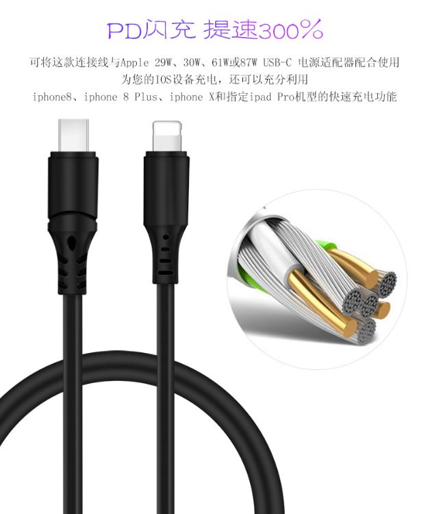 PD快充Type-c轉(zhuǎn)lightning數(shù)據(jù)線USB-C快充線適用于iphone 深圳市創(chuàng)偉電子科技有限公司