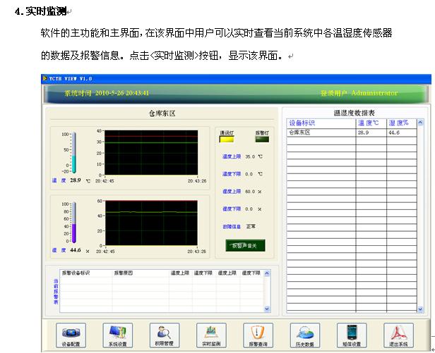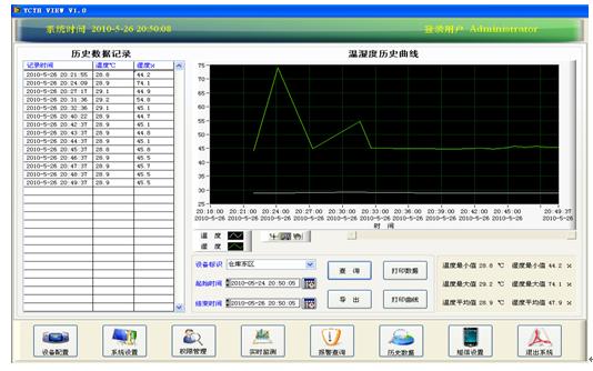 溫濕度采集監(jiān)測(cè)報(bào)警軟件具備溫濕度傳感器的數(shù)據(jù)采集、數(shù)據(jù)存儲(chǔ)、數(shù)據(jù)分析、溫濕度上下限報(bào)警、短信報(bào)警提醒等功能;采用圖形化顯示界面,提供柱狀圖、實(shí)時(shí)曲線(xiàn)、歷史曲線(xiàn)等顯示手段,使用戶(hù)觀察數(shù)據(jù)更加直觀和方便。