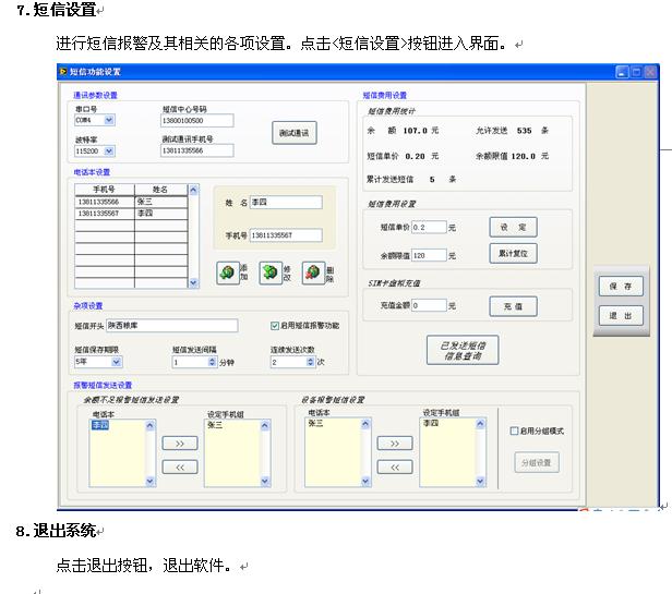 本系統(tǒng)增加了短信報(bào)警功能,任何一點(diǎn)的溫度或濕度超出設(shè)定的報(bào)警閥值,立即通過(guò)短信方式發(fā)送到指定的手機(jī)上,報(bào)警手機(jī)臺(tái)數(shù)無(wú)數(shù)量限制。