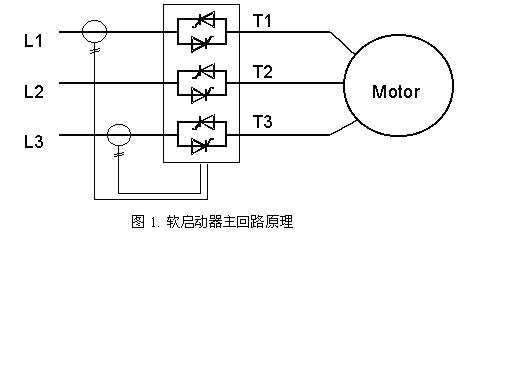 電機(jī)啟動(dòng)器決定使用軟啟動(dòng)器。軟啟動(dòng)器的基本原理如圖1所示,通過(guò)控制可控硅的導(dǎo)通角來(lái)控制輸出電壓。因此,軟啟動(dòng)器從本質(zhì)上是一種能夠自動(dòng)控制的降壓?jiǎn)?dòng)器,由于能夠任意調(diào)節(jié)輸出電壓,作電流閉環(huán)控制,因而比傳統(tǒng)的降壓?jiǎn)?dòng)方式(如串電阻啟動(dòng),自耦變壓器啟動(dòng)等)有更多優(yōu)點(diǎn)。例如滿載啟動(dòng)風(fēng)機(jī)水泵等變轉(zhuǎn)矩負(fù)載、實(shí)現(xiàn)電機(jī)軟停止、應(yīng)用于水泵能完全消除水錘效應(yīng)等。