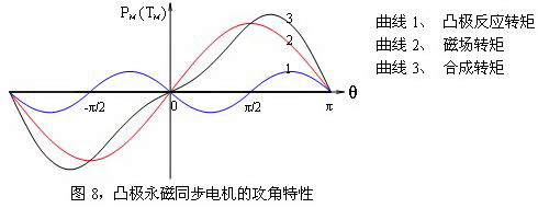 由于凸極反應(yīng)轉(zhuǎn)矩的影響,隱極永磁同步電機的功角特性變差。
