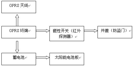 2、 磁性開關(guān):固定在井蓋(防盜門)內(nèi),主要是對(duì)井蓋(防盜門)的閉合做出反應(yīng),產(chǎn)生閉合信號(hào)發(fā)送給GPRS終端