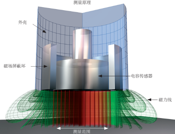 傳統(tǒng)電容式傳感器,會(huì)從電極側(cè)面散發(fā)磁力線。這中磁場(chǎng)會(huì)導(dǎo)致錯(cuò)誤的測(cè)量結(jié)果。德國(guó)米銥的電容式傳感器帶有一個(gè)接地屏蔽環(huán),可以有效減少側(cè)面磁場(chǎng)和邊界效應(yīng),從而得到更加準(zhǔn)確的測(cè)量結(jié)果。從接地屏蔽環(huán)發(fā)出的磁力線不會(huì)影響測(cè)量結(jié)果。