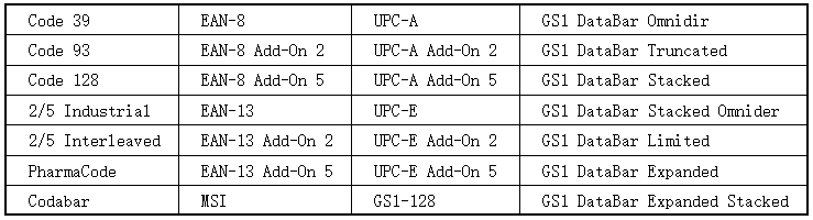 本項目采用的“龍睿智能相機”具有可獨立配置的多碼識別功能。相機一次拍照可讀取多達50個碼,一個視野范圍內(nèi)可根據(jù)不同位置碼的圖像質(zhì)量單獨配置參數(shù),龍睿可讀取28種碼制(如下圖),且自帶訓練功能。還可結(jié)合檢測、定位和測量應用,大大提高了現(xiàn)代化生產(chǎn)的效率。