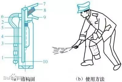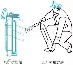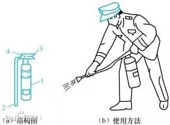 (3)干粉滅火器的使用。干粉滅火器主要適用于撲救石油及其產(chǎn)品、可燃氣體和電氣設(shè)備的初期火災(zāi)。其使用方法為。
