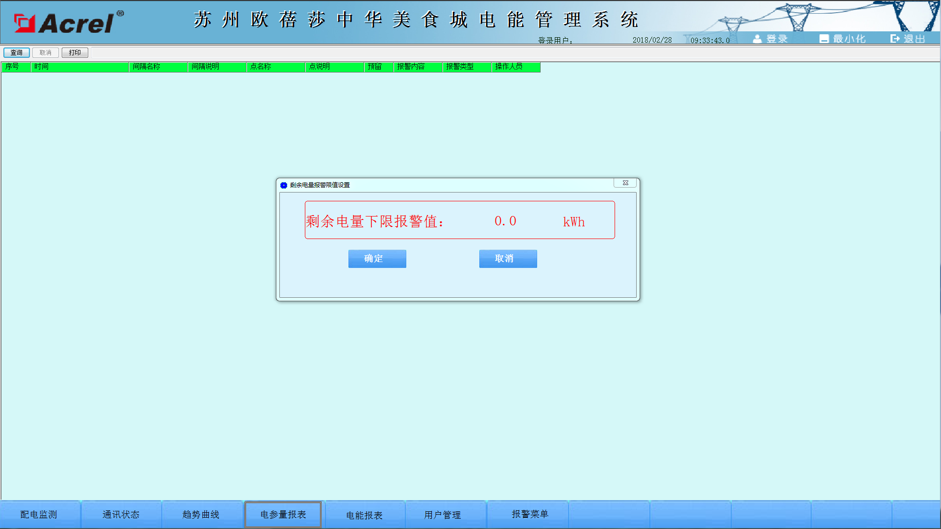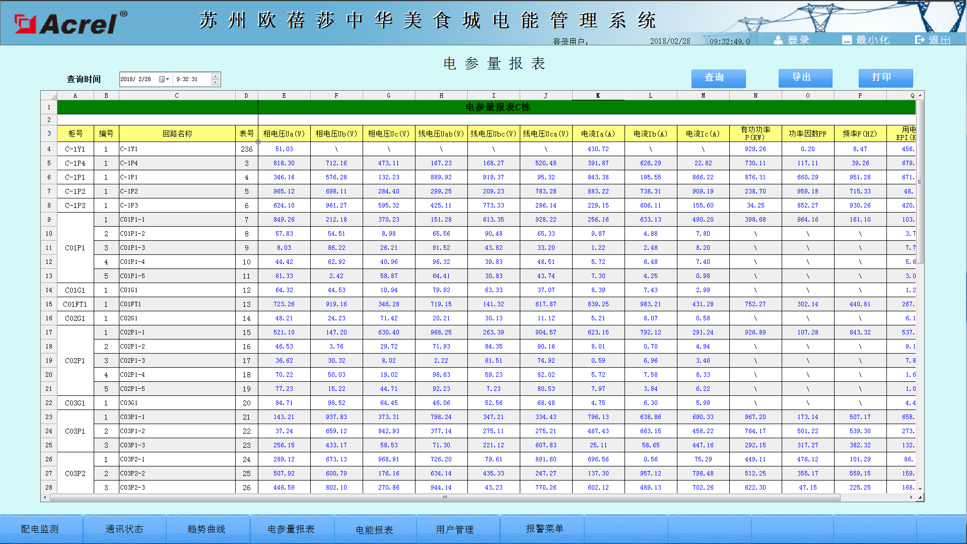 報(bào)表具有自由設(shè)置查詢時(shí)間實(shí)現(xiàn)日、月、年的電能統(tǒng)計(jì),數(shù)據(jù)導(dǎo)出和報(bào)表打印等功能。