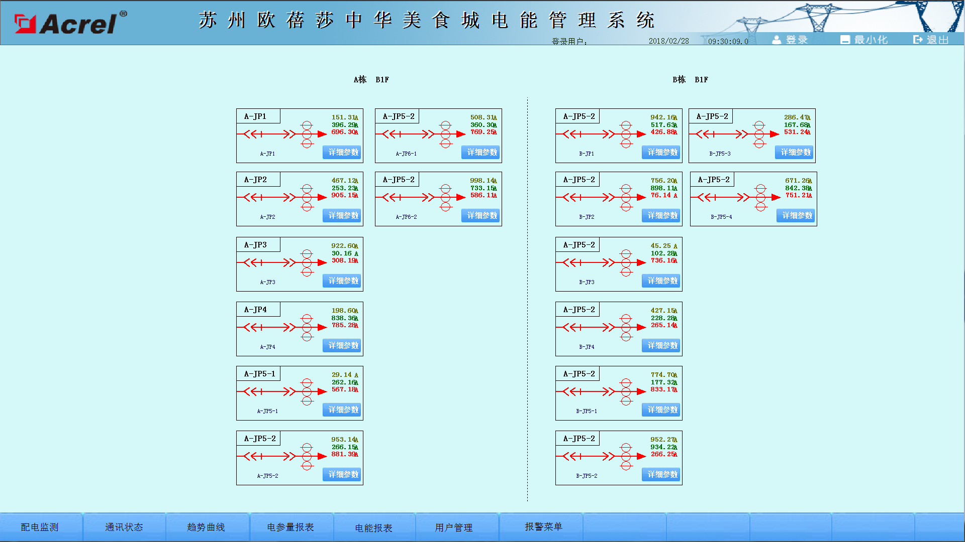 蘇州歐蓓沙中華美食城電能管理系統(tǒng)為樓層配電箱的管理,本項(xiàng)目針對(duì)這及樓層配電箱的0.4kV配電和進(jìn)行電能管理、售電充值。